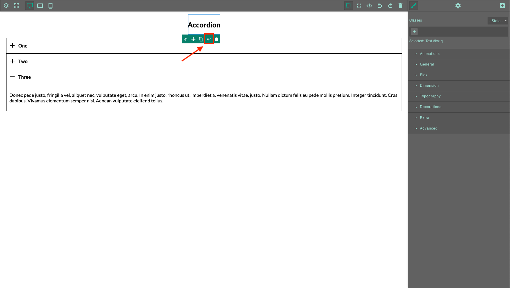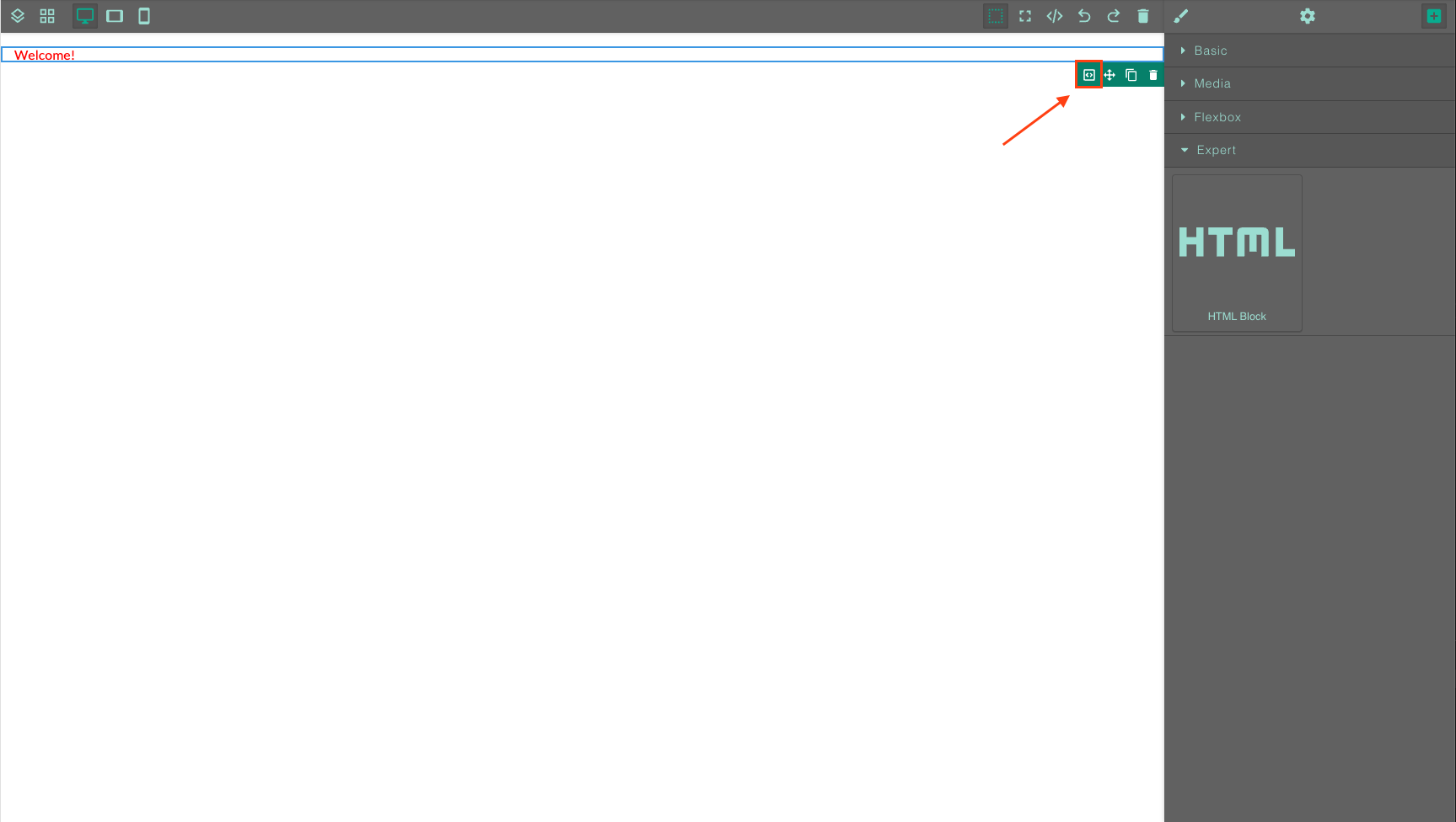 Der Text-Baustein verfügt ebenfalls über einen Code-Editor. Du kannst diesen über das Code-Icon öffnen und vom Texteditor generierte HTML weiter anpassen.