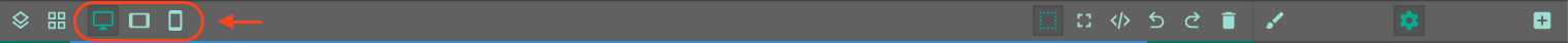 Dabei werden deine Änderungen an Design- und Bausteineinstellungen (Pinsel- und Zahnrad-Icon im rechten Bereich der Toolbar) jeweils pro Bildschirmgröße gespeichert. Du kannst also für jede Bildschirmgröße beispielsweise unterschiedliche Bausteine ein- oder ausblenden, die Ausrichtung der Flex-Layout-Bausteine anpassen, etc.